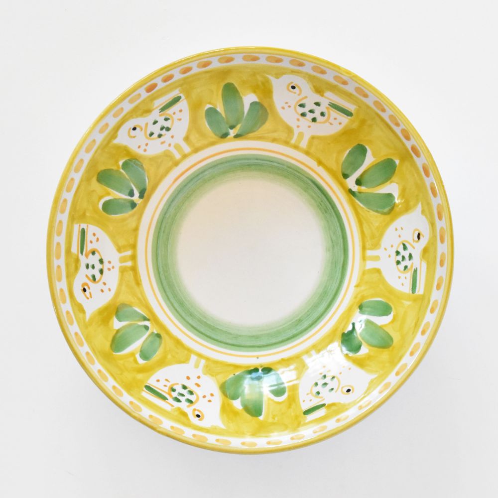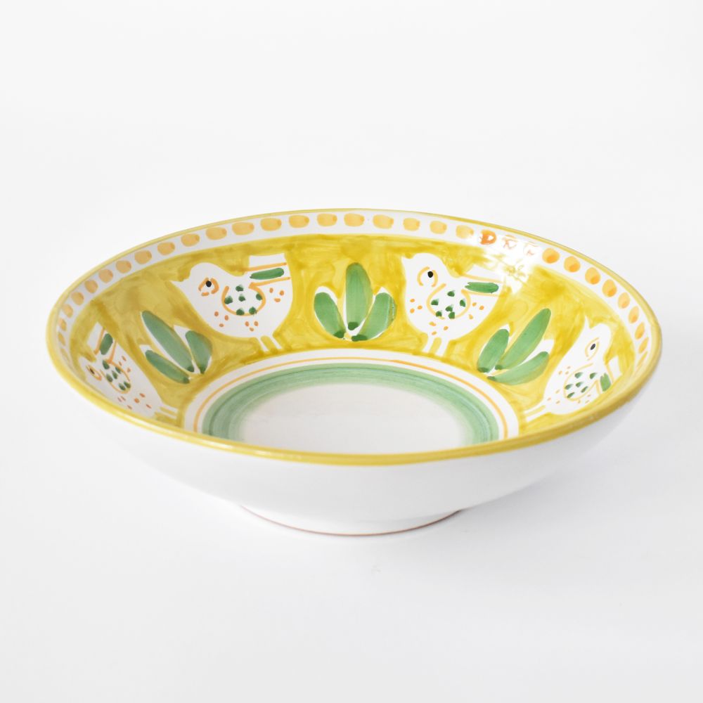 Campagna collection Chartreuse Pulcino (Chick) runs around our hands-down favorite bowl for generous helpings of pasta. The coupe shape of this ceramic bowl is also perfect for individual salads topped with protein, or as a serving dish for putting out dips or bringing sides of grains or veggies to the table. Hand-painted by the Solimene studio in the town of Vietri sul Mare, on Italy's Amalfi Coast.